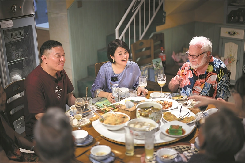 A descendant of a former expat family enjoys a local dinner in Kuliang (also known as Guling), in Fuzhou, Fujian province. [Photo provided to China Daily]