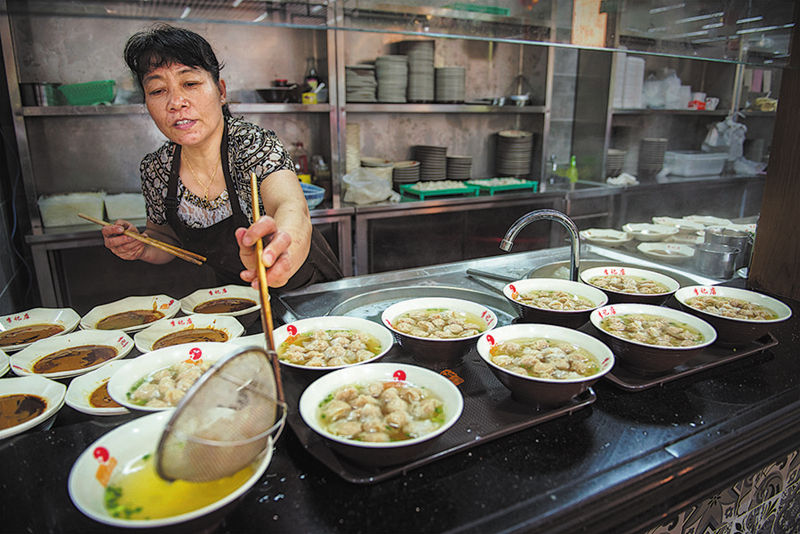 Mindful of changing tastes, Huang has been innovating, and her minced meat filling is attracting many diners who line up in front of her shop. Her menu also includes tossed noodles, steamed dumplings and hearty soups. Their popularity explains why the Shaxian snack is called the "national snack" of China.