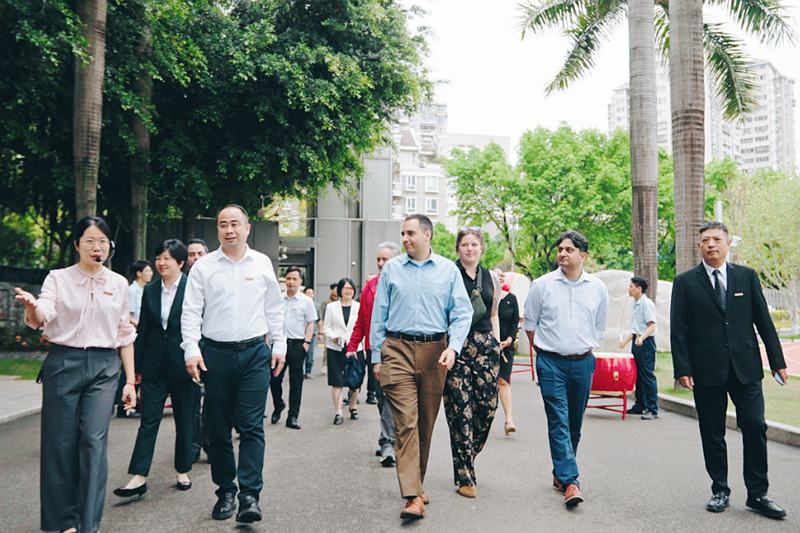 Ibsen and delegation members visit the campus of the Affiliated High School of Fuzhou Institute of Education. [Photo provided to chinadaily.com.cn]