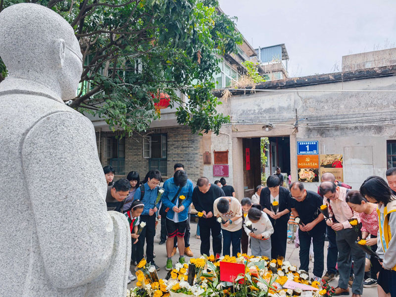 Taiwan compatriots visit Wu Shi's former residence in Luozhou Town, Fuzhou, to pay tribute to his legacy. [Photo provided to chinadaily.com.cn]