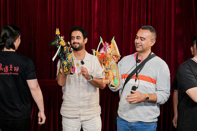 Arab artists experience the charm of traditional glove puppetry in Fujian in April. [Photo provided to chinadaily.com.cn]