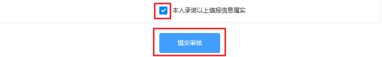 确认申请信息无误后,勾选“本人承诺以上填报信息属实”,然后点击【提交审核】。