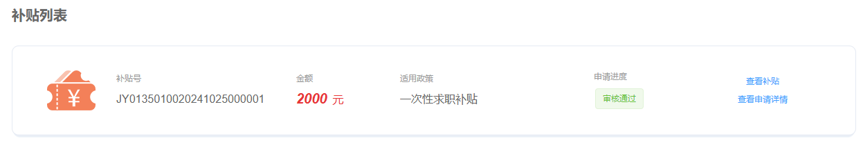 申请审核通过后,在补贴列表中可查看到状态为“审核通过”。