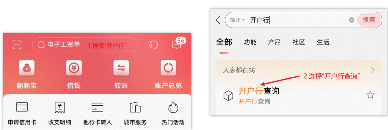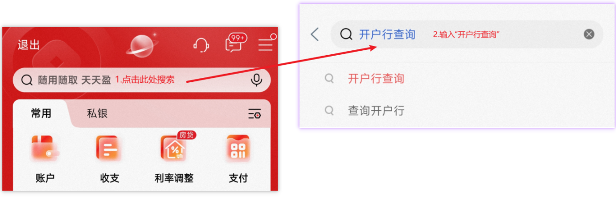 ②在首页搜索框中搜索“开户行查询”。