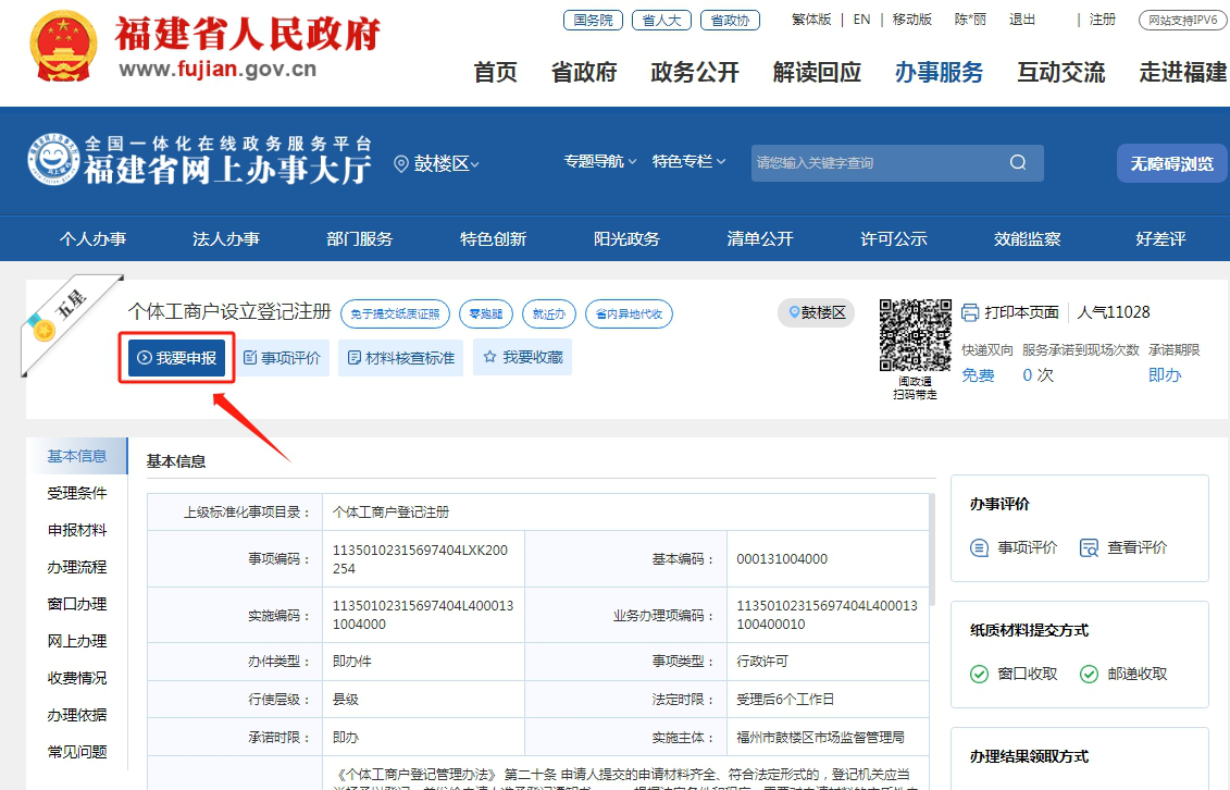 1.登录“福建省网上办事大厅”,定位到福州市鼓楼区,如下图所示: