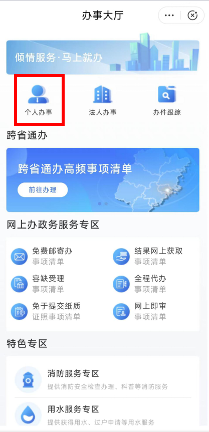 2.点击“个人办事”