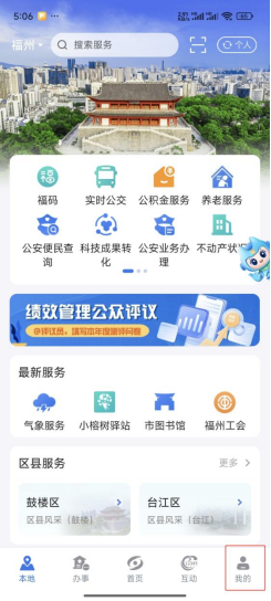 1.登录“闽政通”APP,点击右下角“我的”。
