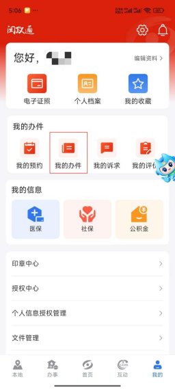 2.点击“我的办件”,查询办件进度。