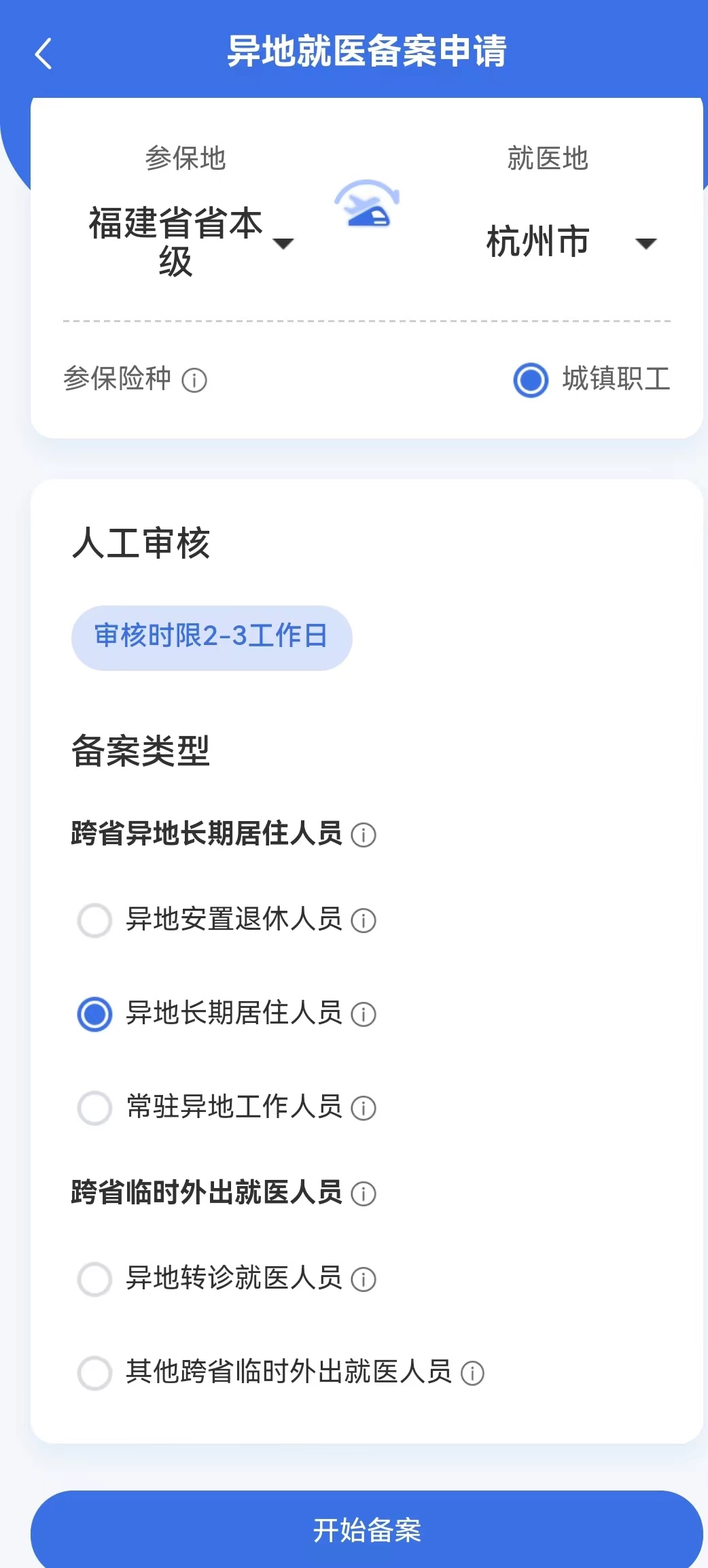 注:目前除三明、南平外,省内异地就医无需办理异地就医备案;跨省异地就医均需办理异地就医备案。因急诊异地就医的,根据医疗机构上传急诊标识,视同已备案,无需办理异地就医备案。