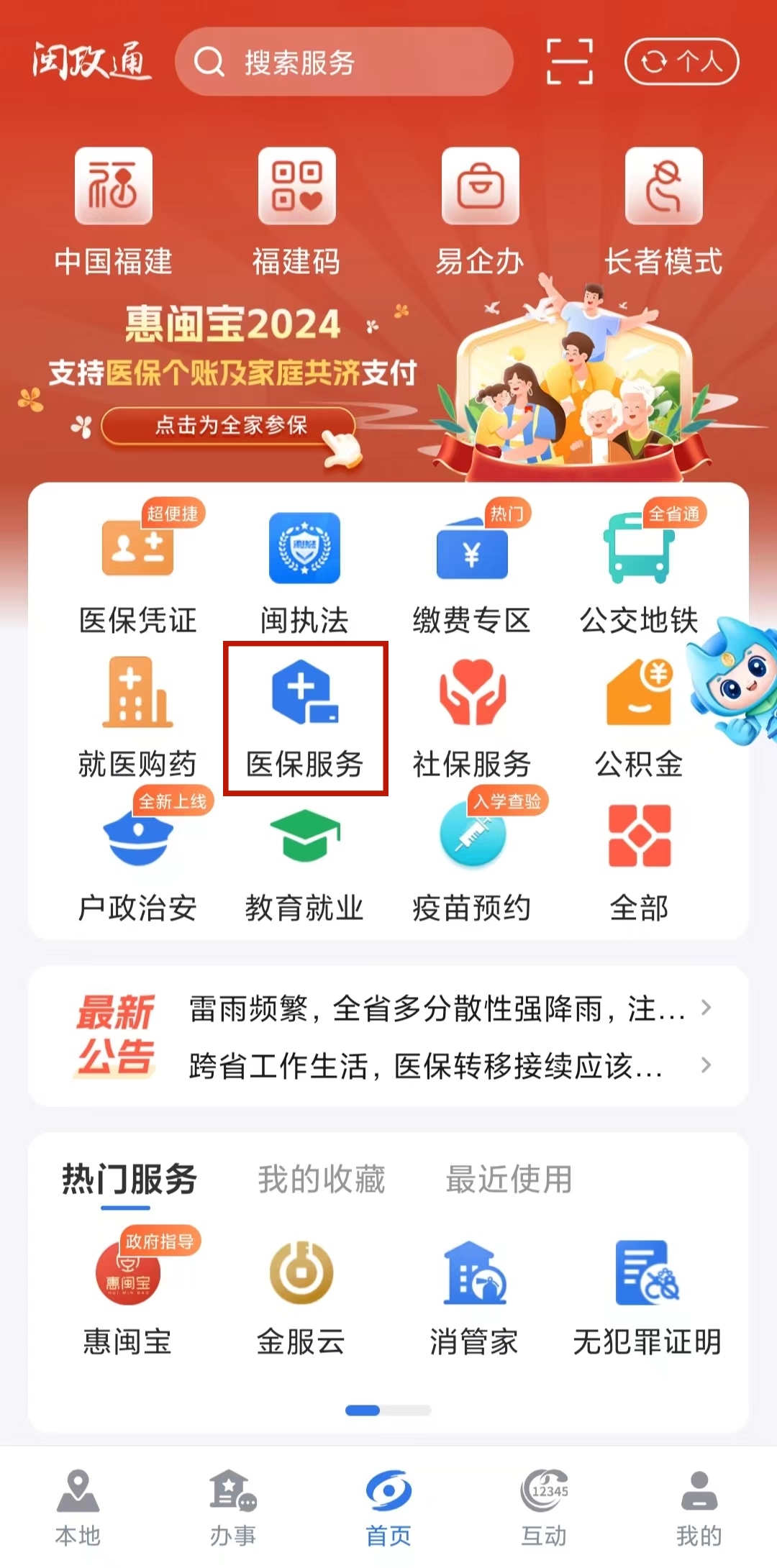 参保人员可通过参保地医保经办机构窗口或国家医保服务平台APP、闽政通APP、“福建医疗保障”微信小程序等多种线上渠道申请办理异地就医登记备案。