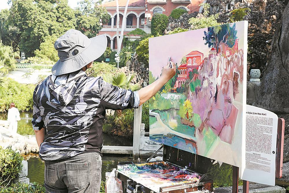 美术名家在鼓浪屿采风作画。