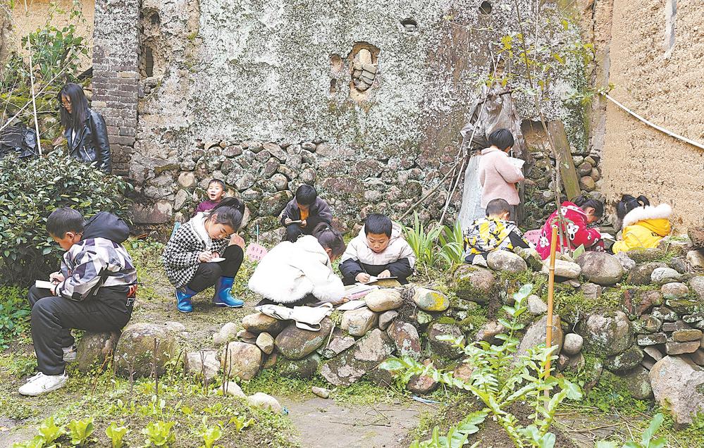 “没有现成教材,自然就是课本,村民的生活就是教案。”毛华磊介绍,他们把课堂搬到溪边、田埂、古厝,用废弃材料做拼贴画,带孩子们观察草木、记录乡村景致,设计充满野趣的实践课程。