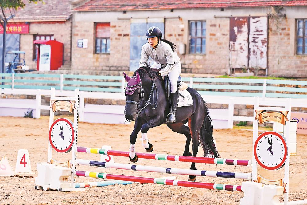 7日,在霞浦县宏昌工业文创基地跑马场,工作人员表演马术。