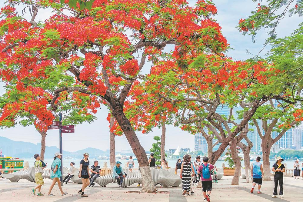 1986年,凤凰木高票当选为厦门市市树。据悉,今年凤凰花开得比往年更加旺盛,盛花期将持续至6月上旬,眼下正是赏花观景的好时节。