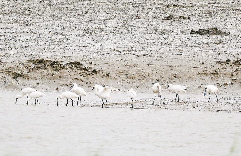 近日,在泉州市泉港区山腰盐场及周边的湿地滩涂上,摄影爱好者拍摄到国家一级保护野生动物黑脸琵鹭。近年来,泉港区通过一系列具体措施,有效地保护当地森林资源、改善海域水质,提升了生态环境质量,为鸟类提供良好的栖息地和丰富的食物来源。截至目前,当地已观察并记录到了黄嘴白鹭、斑嘴鸭、绿翅鸭、红嘴鸥、黑嘴鸥等50多种国家保护或濒危动物在此栖息。(林弘梫 庄绍坤 摄)