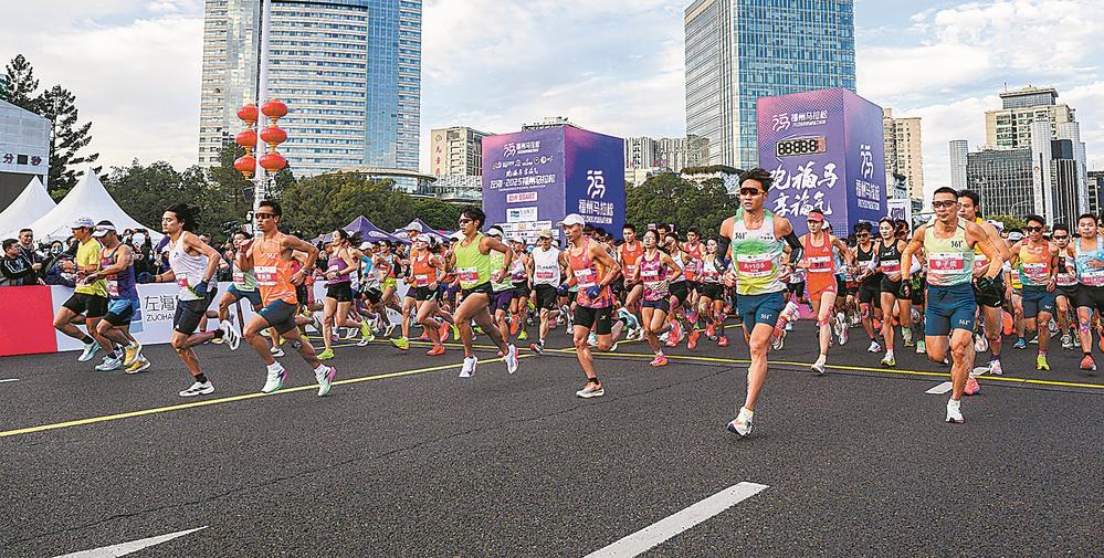 14日,2025福州马拉松在福州五一广场鸣枪开跑。本届赛事设全程马拉松、半程马拉松两个项目,参赛选手达3.5万人,其中来自福州市以外的参赛选手共24610人,占比70.3%;来自福建省以外的参赛选手共15906人,占比45.4%;达到大众精英选手标准的参赛者共5646人。