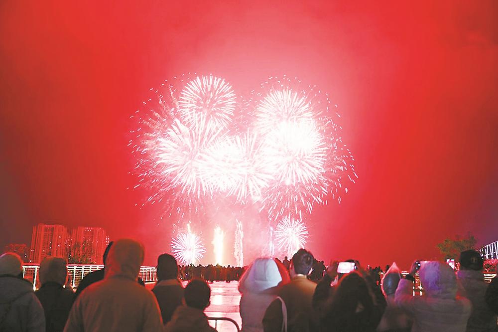 昨晚,平潭举行“爱你一万年”主题跨年嘉年华。夜幕之下,“春夏秋冬”四篇章烟花秀轮番登场,将夜空装点得如梦似幻。(通讯员 林君斌 摄)