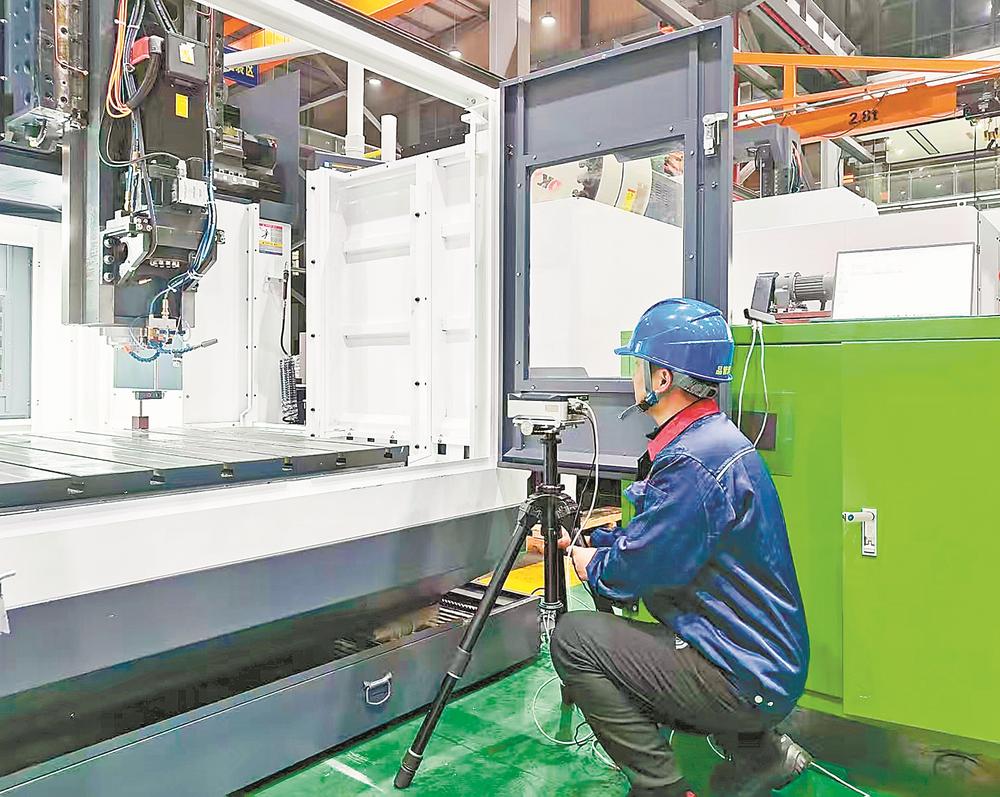 工人对YSM2218高速龙门机进行检验