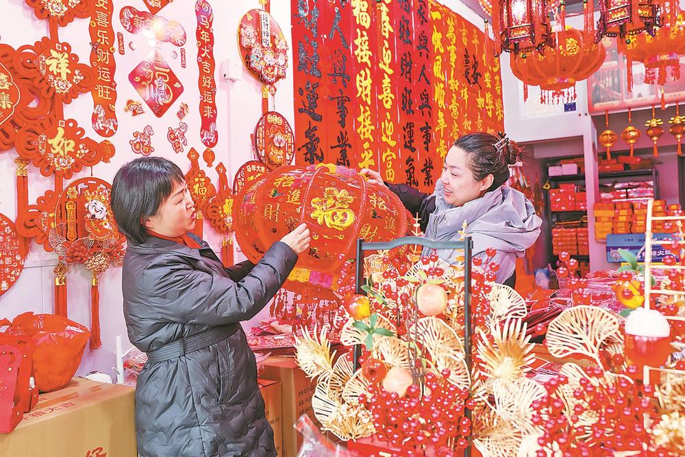 新春佳节将近,市场商品琳琅满目,年味渐浓。图为近日,武夷山市民在一家商店选购年货。(邱汝泉 摄)