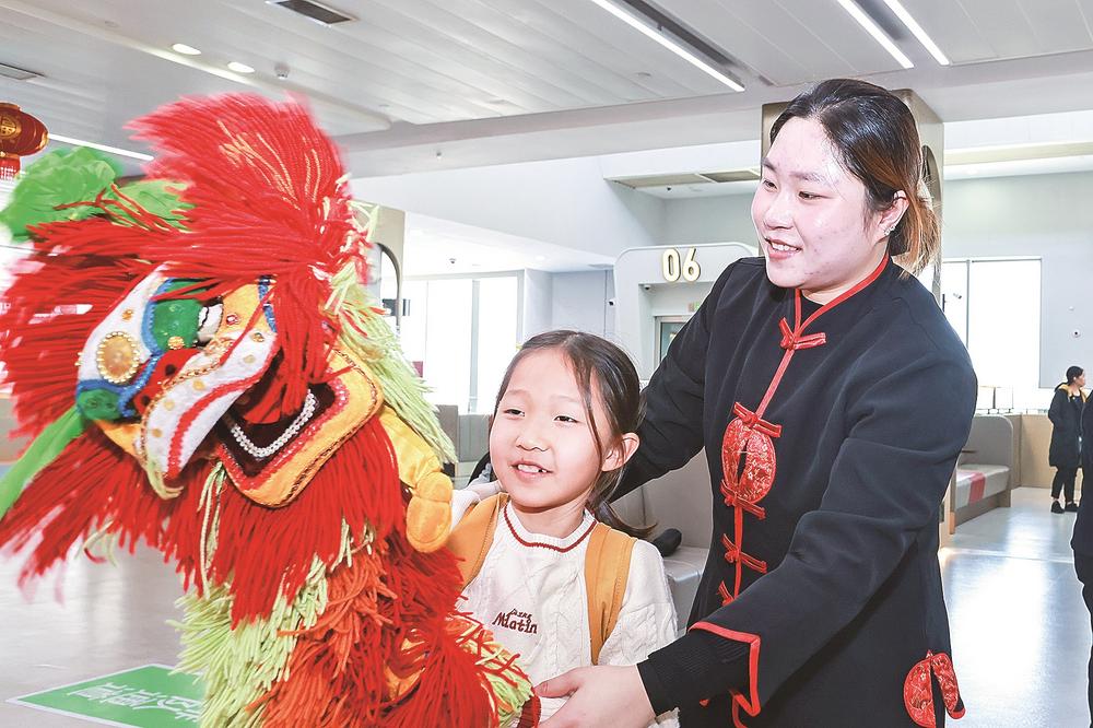 近日,在泉州晋江国际机场,经典闽南木偶戏轮番上演,旅客们沉浸其中,在欢声笑语中感受泉州的文旅温度。图为小朋友体验闽南木偶戏。(记者 汤海波 通讯员 黄晓静 摄)