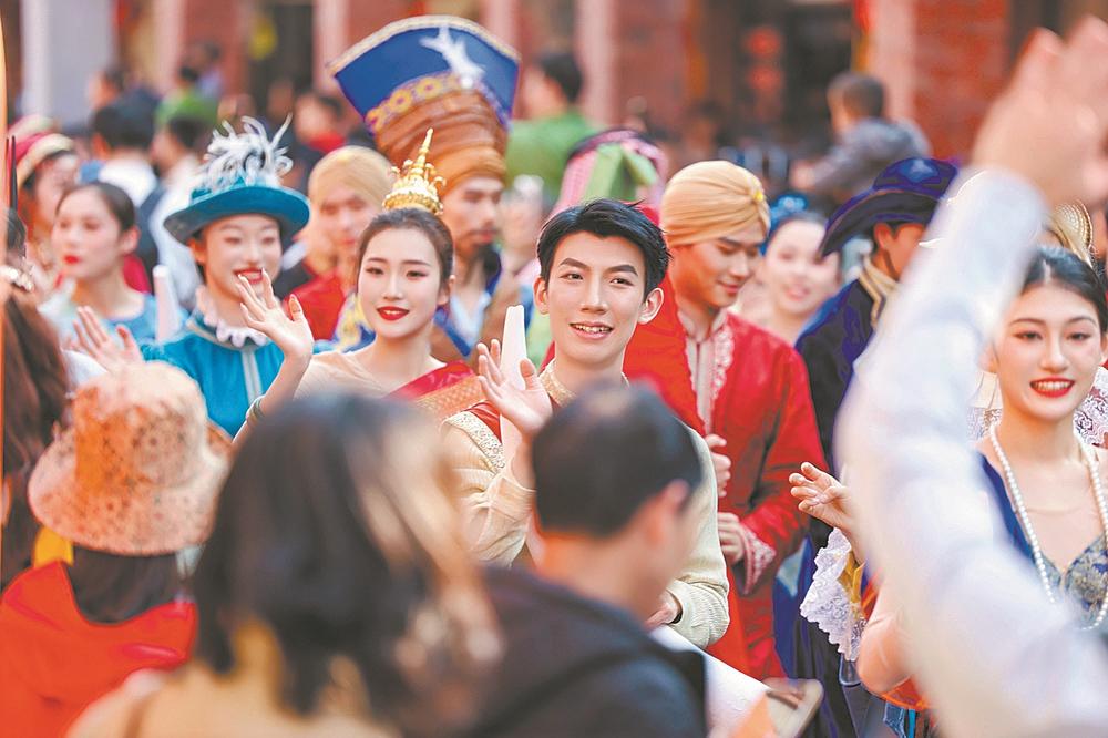 2月19日,2026泉州非遗街秀(迎番货)活动在泉州古城核心区启幕。活动通过沉浸式巡游与市集,生动再现了千年前“古刺桐市井烟火地,十洲商人聚此间”的繁华图景,为广大市民游客奉上一场穿越时空的文化盛宴。(记者 黄琼芬 摄)