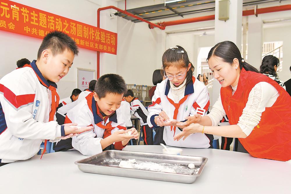 2日,德化县实验小学举办汤圆制作体验活动,孩子们在老师的带领下制作汤圆,用小手揉出“团圆味”。(记者 汤海波 通讯员 许华森 摄)