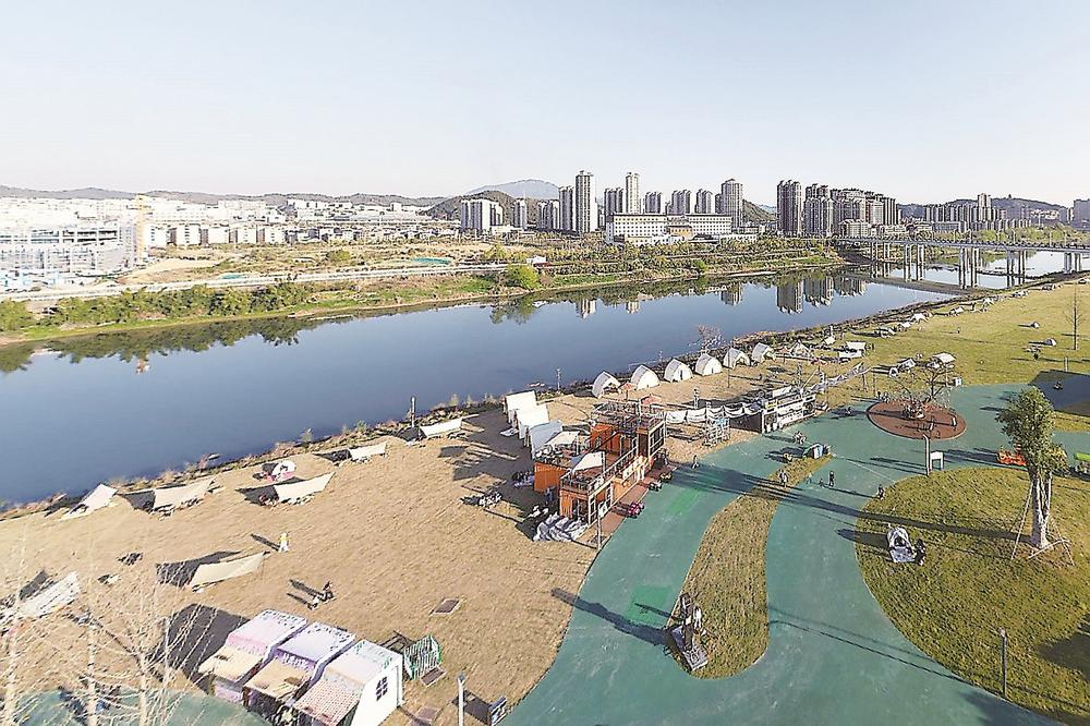 14日,南平市崇阳溪漫游道(建阳)起始点公园,春风和煦,阳光明媚。市民纷纷携家带口、呼朋唤友来此露营、赏景,尽情享受美好时光。(黄杰敏 摄)