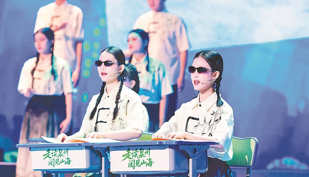 23日,在2026年泉州市全民阅读大会现场,随着音乐响起,泉州市特殊教育学校的孩子精彩演绎“指尖世界”,齐声进行盲文阅读,赢得现场观众阵阵掌声。(记者 林剑波 摄)