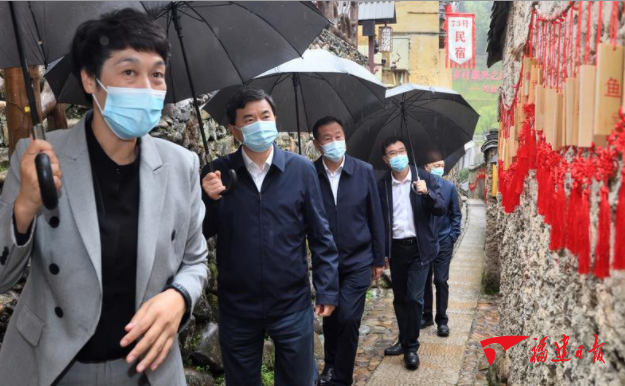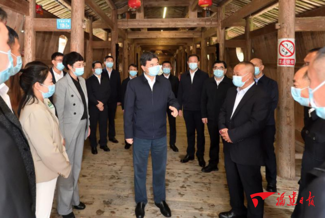 11月19日,省委书记周祖翼深入宁德市寿宁县下党乡,走进“难忘下党”主题馆了解下党乡发生的巨大变化,与基层党员干部、村民代表在鸾峰桥上,共同交流学习党的二十大精神的心得体会,并实地调研下党乡推进乡村振兴、建设美丽乡村等情况。(周琳/文 肖春道/图)