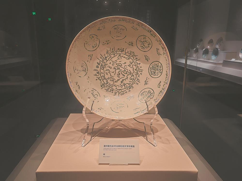 五彩开光阿拉伯文字纹瓷盘 李妙珠 摄