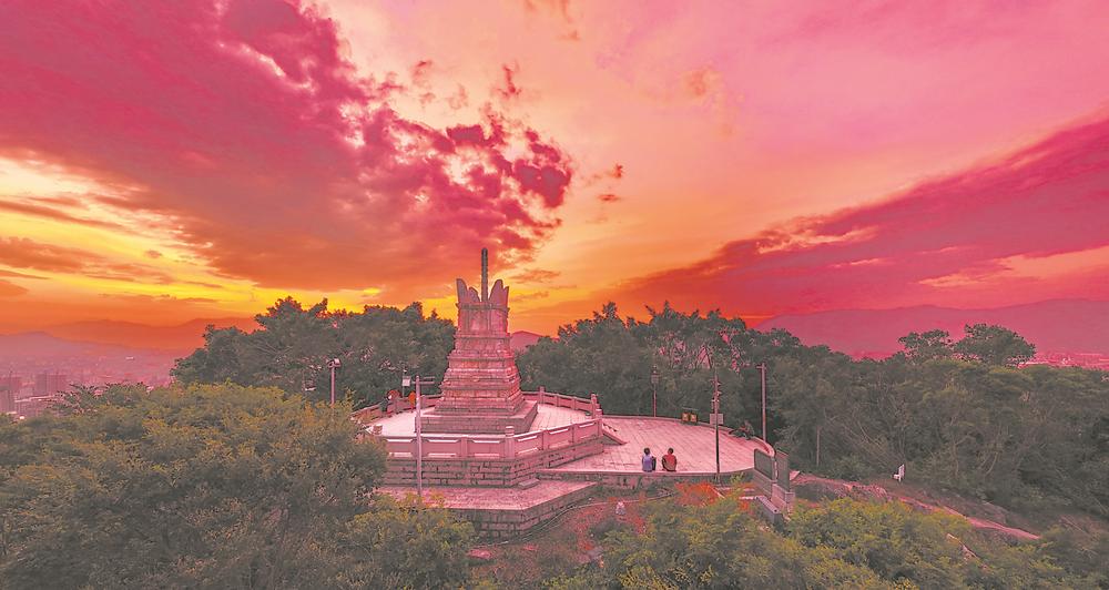 塔斗山海拔118米,天中万寿塔就矗立于山巅。万寿塔,始建于唐五代时期,是我国现存最古老的宝箧印经石塔(亦称“阿育王塔”),2001年公布为全国重点文物保护单位。