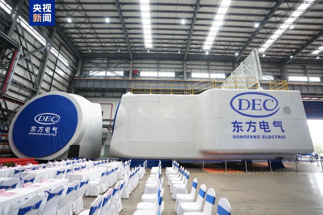 全球最大的26兆瓦级海上风力发电机组在福建下线。图源:央视新闻