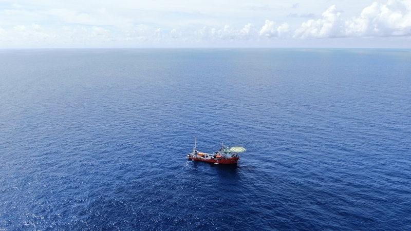 “海洋地质二号”科考船搭载“海马”号深海遥控潜水器在南海北部进行“源火”采集(9月18日摄)。