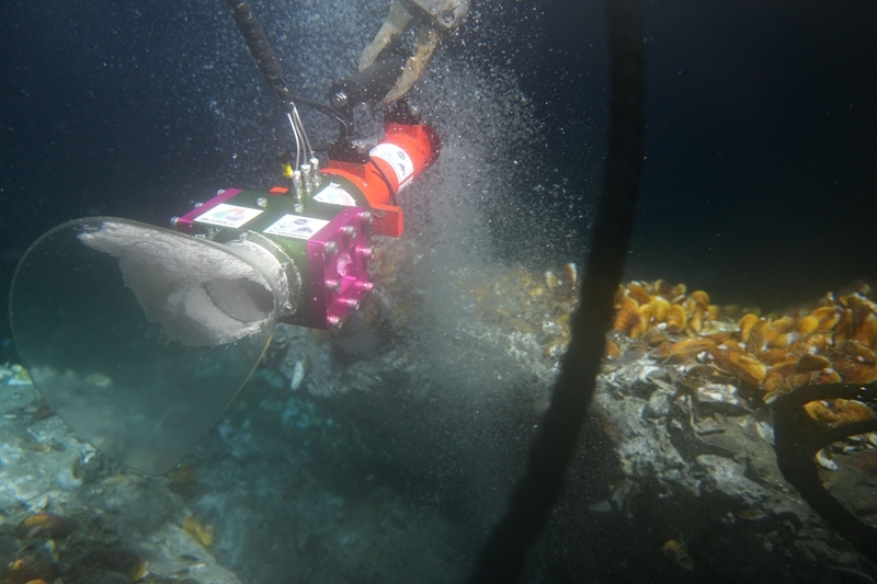 采火装置在海底冷泉喷口采集可燃冰(9月18日摄)。