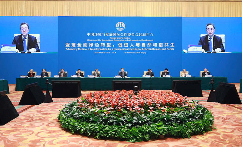 新华社北京10月16日电 中共中央政治局常委、国务院副总理、中国环境与发展国际合作委员会主席丁薛祥16日在北京出席国合会2025年年会并讲话。