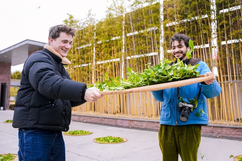 At Wuyi Mountain, participants took bamboo raft rides along the Nine-Bend River, observing the region's distinctive peaks and rock formations. They then visited local tea plantations, learning to pick and process tea leaves by hand. Influencers emphasized the importance of understanding proper techniques over speed, noting that explaining the production process was key to conveying the character of Wuyi rock tea. One Italian participant said that the experience provided clarity on how to describe Chinese tea beyond technical terms.
