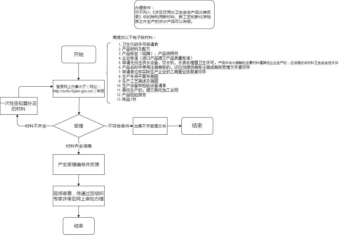 国产涉水产品新批件申请流程大致分为:申请受理—材料审查—现场审查—专家评审—办结
