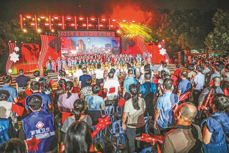 9月28日晚,漳州市芗城区在林语堂文化旅游区主广场举办“盛世庆华诞・芗城谱新篇”2025年芗城区国庆文艺晚会。晚会通过四大篇章12个精彩的文艺节目,生动展示了闽南文化独特魅力,向伟大祖国献上美好祝福。(报业集团记者 杨凌怡 通讯员 郑文典 摄)