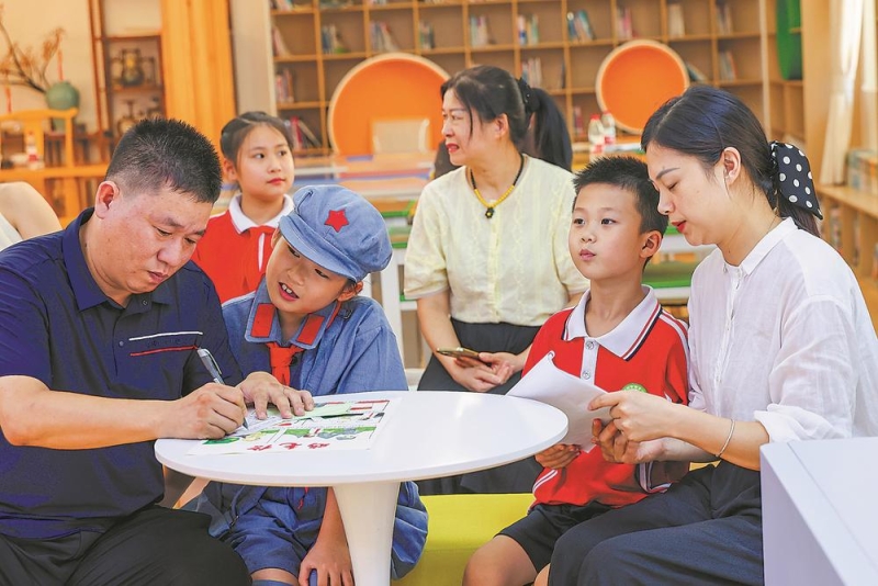 9月28日,武夷山市新丰小学开展“读红色经典,传家国情怀”主题活动,学生及家长共读红色经典绘本,迎接国庆。(通讯员 邱汝泉 摄)