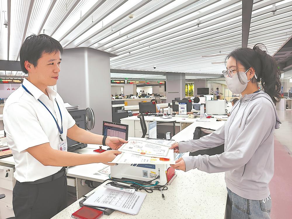 8月29日,晋江市行政服务中心工作人员为五里程农粮油店负责人颁发企业营业执照。这是泉州市首张通过“个体工商户转型为企业‘一件事’”服务办理的企业营业执照,标志着晋江个体工商户转型服务迈入“高效办成一件事”新阶段。林锦鑫 摄