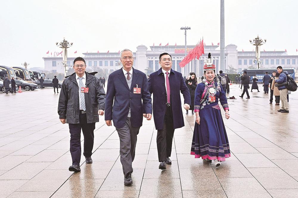 4日下午,全国政协十四届四次会议开幕,福建省全国政协委员意气风发地走进人民大会堂。记者 吴恩儿 摄