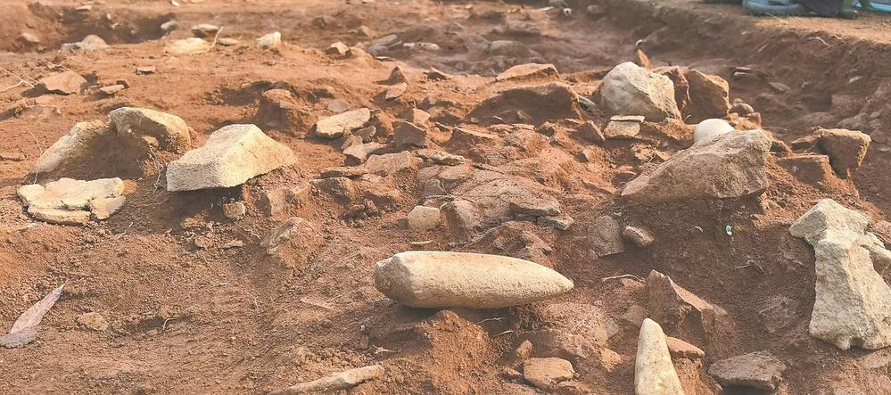 仓里山遗址出土 石制品与陶片堆