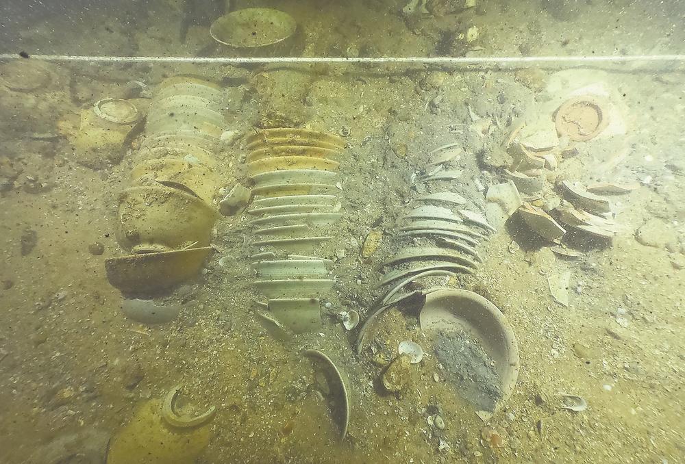 圣杯屿沉船舱内 成摞瓷器