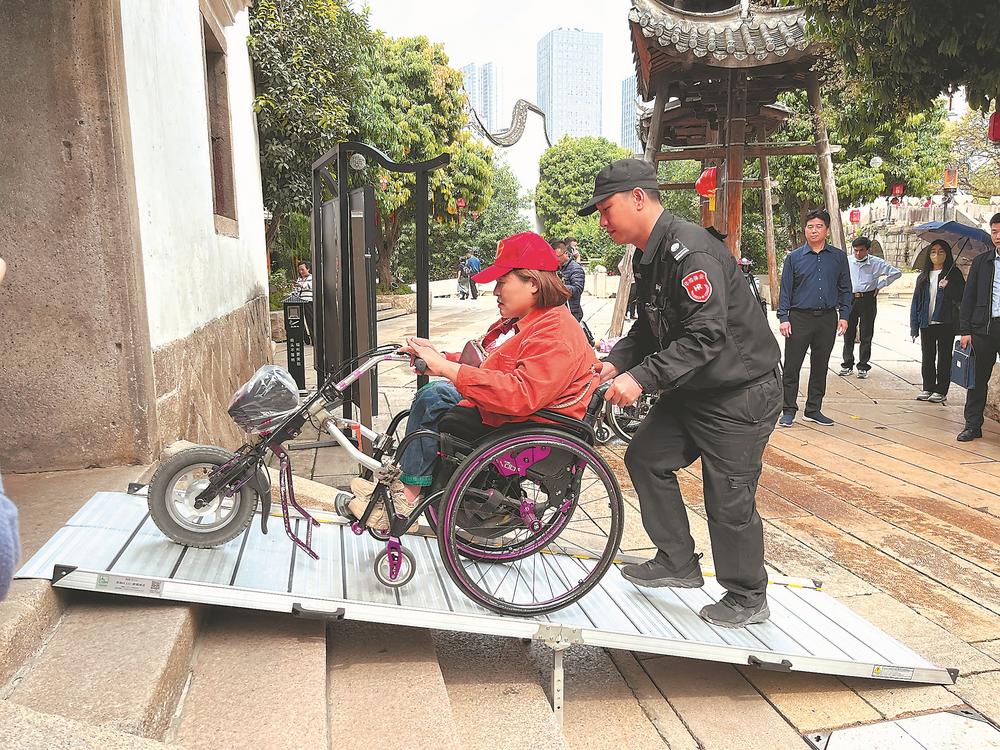 23日,省残联举办“共建无障碍环境 共促文旅经济发展”活动,邀请残疾人体验旅游景区无障碍环境。