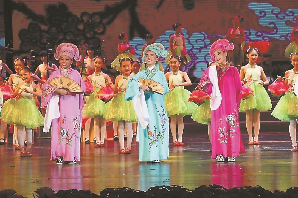 涵江区实验小学学生在表演原创戏曲节目《莆仙戏曲尽芳菲》。(资料图片)