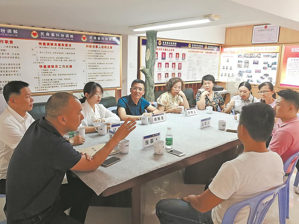 这是漳州市家居商会调解员帮助矛盾双方解事结、化心结的生动一幕。
