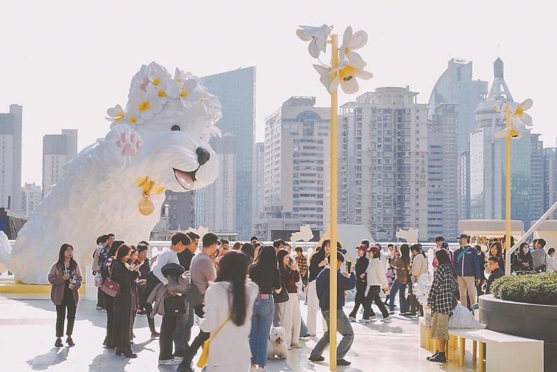 “厦门万象城是集购物、餐饮、娱乐、休闲等多种功能于一体的大型商业综合体,大家来打卡‘簪花小狗’的同时,还可以享受一站式购物。”厦门万象城推广负责人沈达夫说。作为厦门“LOADING楼顶”系列活动的4.0版本,此次“簪花小狗”展览相比以往的尝试更具破圈效应。