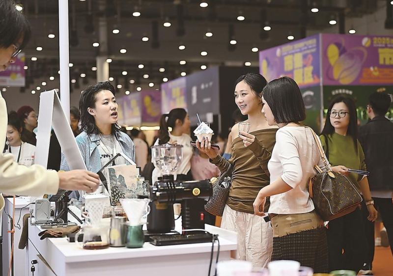 厦门咖啡展现场,参观者在品鉴咖啡。