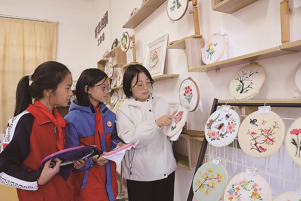 “客家刺绣和普通的十字绣不一样,孩子学习客家刺绣,有利于进一步了解客家文化。”黄珊珊担任刺绣教师后,成了孩子们口中的“刺绣姐姐”。