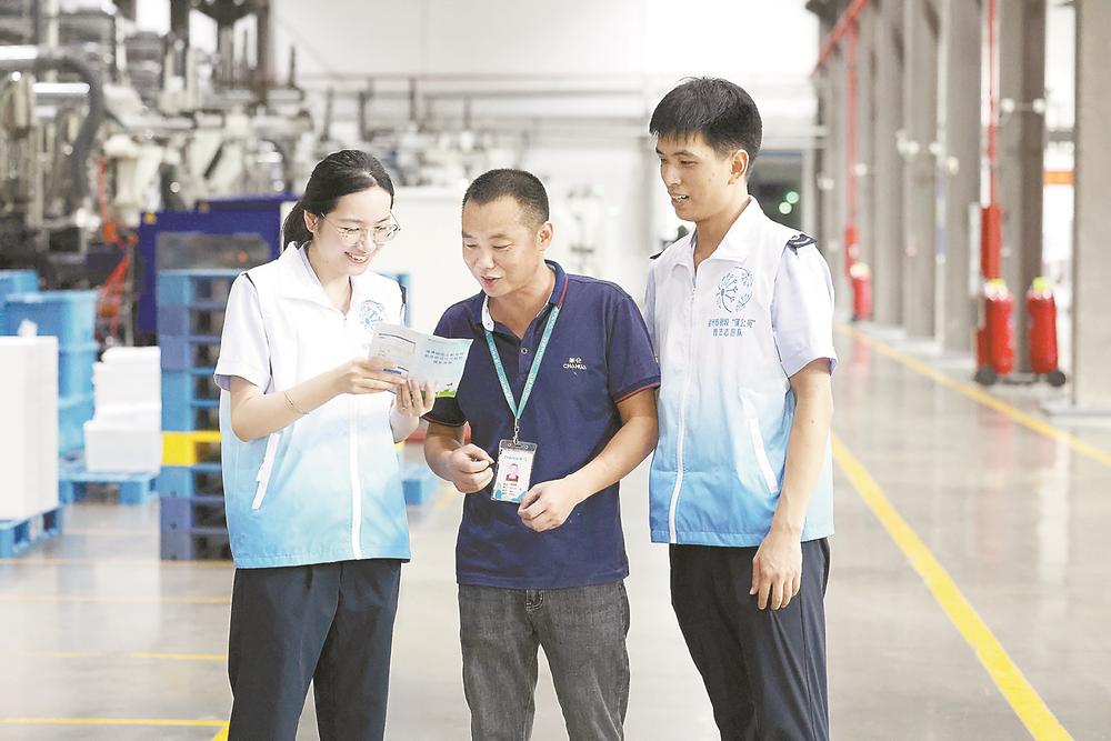 “蒲公英”普法联盟志愿者到企业进行普法。(受访者提供)
